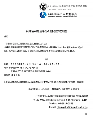 永井恒司先生を偲ぶ会開催のご報告
